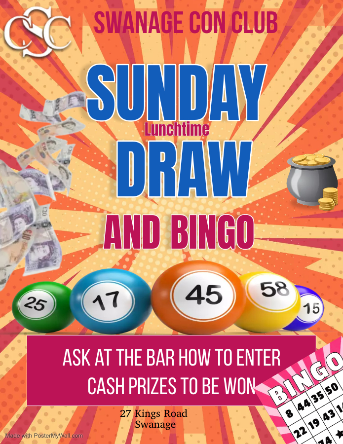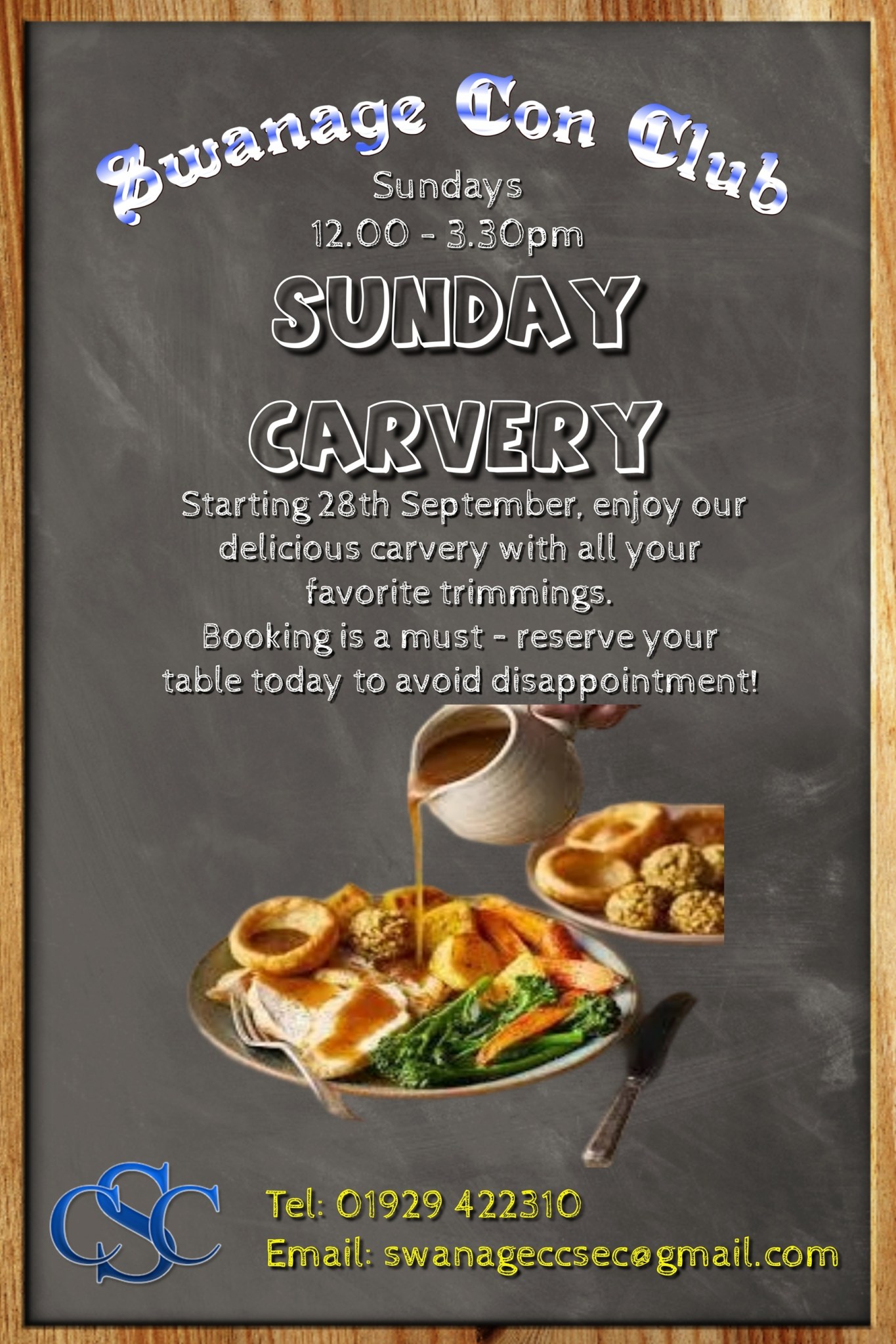 | Sunday | Sunday Carvery 12 – 15:30 Sunday Lunchtime Draw Superlotto Sunday Bingo | we close 22:00 |